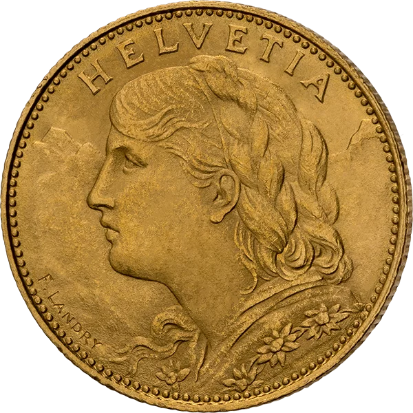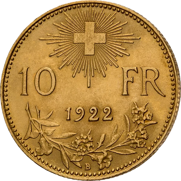 Nur 7 Jahrgänge wurden von der 10-Franken-Gold-Vreneli geprägt. Sie ist damit deutlich seltener als ihre große Schwester, die 20-Franken-Goldmünze mit demselben Motiv. Das Münzbild war bei den Schweizern von Beginn an äußerst beliebt. Noch heute werden Gold-Vrenelis bei den Eidgenossen gern zu besonderen Anlässen verschenkt. Nur wenige Exemplare gelangen darum außer Landes. Besonders in vorzüglicher Erhaltung sind die 10-Franken-Goldmünzen mit dem schönen Frauenkopf weltweit begehrte Sammlerstücke!