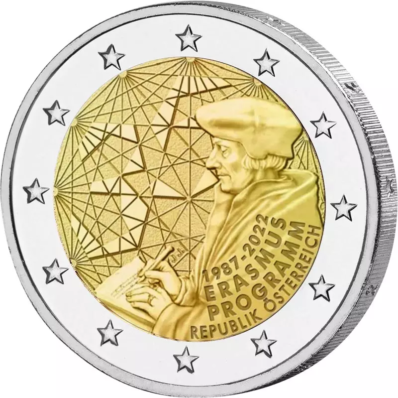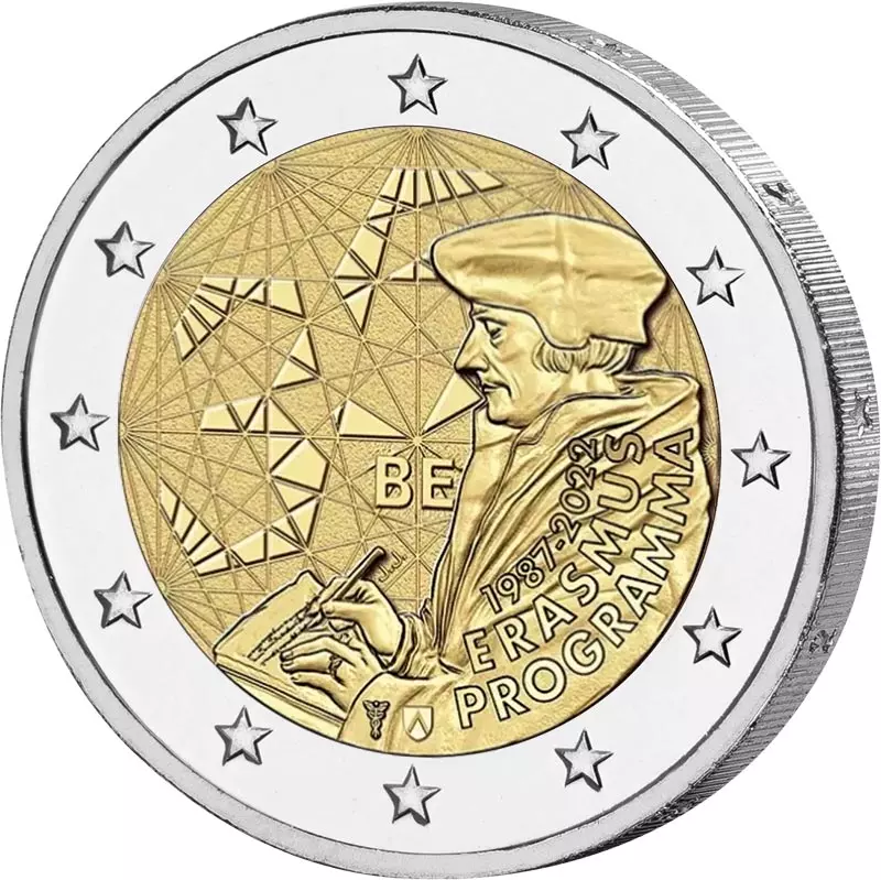 Das Erasmus-Programm der Europäischen Union widmet sich der Förderung allgemeiner und beruflicher Bildung junger Menschen in Europa. Der Name geht auf Erasmus von Rotterdam zurück, einen europäisch gebildeten Humanisten der Renaissance. Gleichzeitig ist er Akronym aus EuRopean Community Action Scheme für the Mobility of University Studies“. Zum 35-jährigen Bestehen des Programms, durch das mittlerweile rund 12 Millionen junge Menschen gefördert wurden, wurde auf Initiative der Europäischen Kommission angeregt, dass die Mitgliedsstaaten der Euro-Zone eine motivgleiche 2-Euro-Gedenkmünze ausgeben.