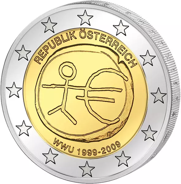 Anlässlich des 10. Jahrestages der Gründung der Europäischen Wirtschafts- und Währungsunion erschien im Januar 2009 eine 2-Euro-Gemeinschaftsausgabe. Die motivgleichen Münzen werden von allen 16 EU-Staaten mit Euro-Währung ausgegeben.