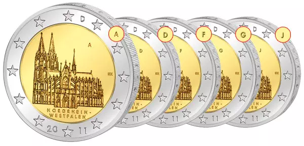 Die neuen 2-Euro-Gedenkmünzen 2011 der Bundesrepublik Deutschland sind dem Wahrzeichen Nordrhein-Westfalens, dem Kölner Dom gewidmet. Seit 1996 zählt er zum UNESCO-Weltkulturerbe.
