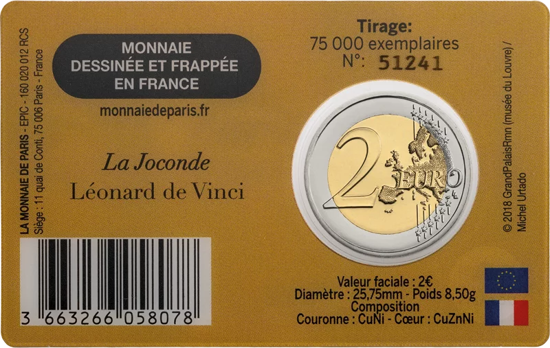 2 Euro Frankreich Louvre-Museum 2025 in der Coin Card Mona Lisa