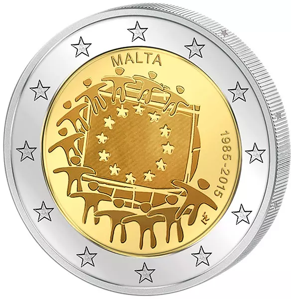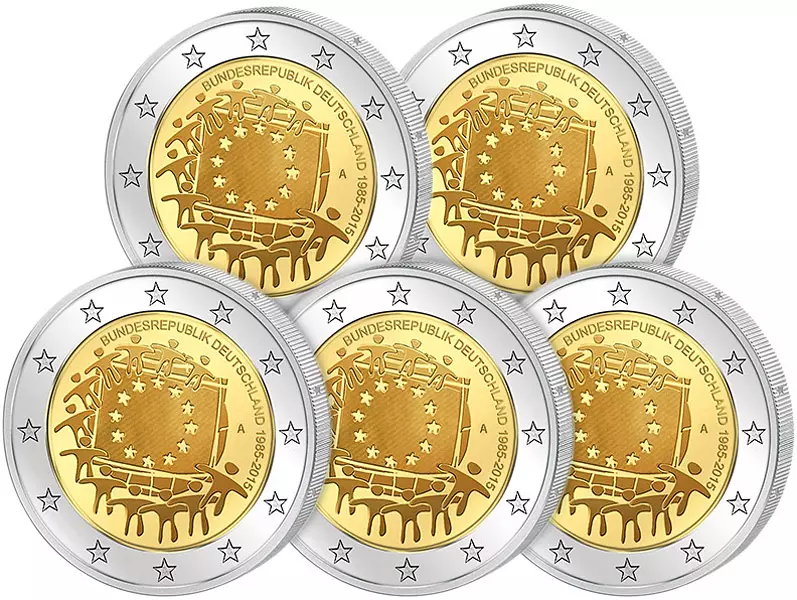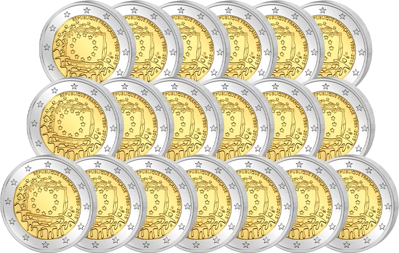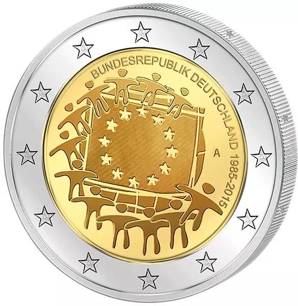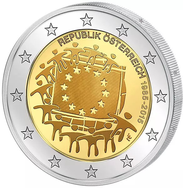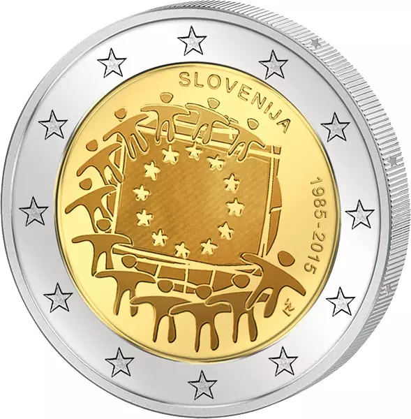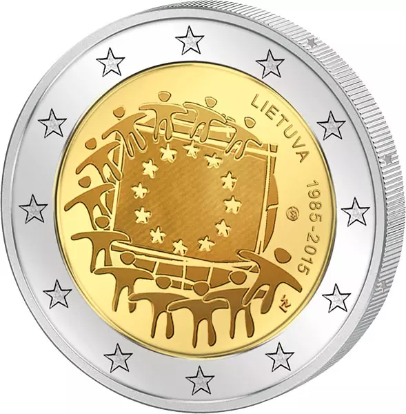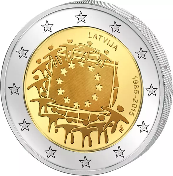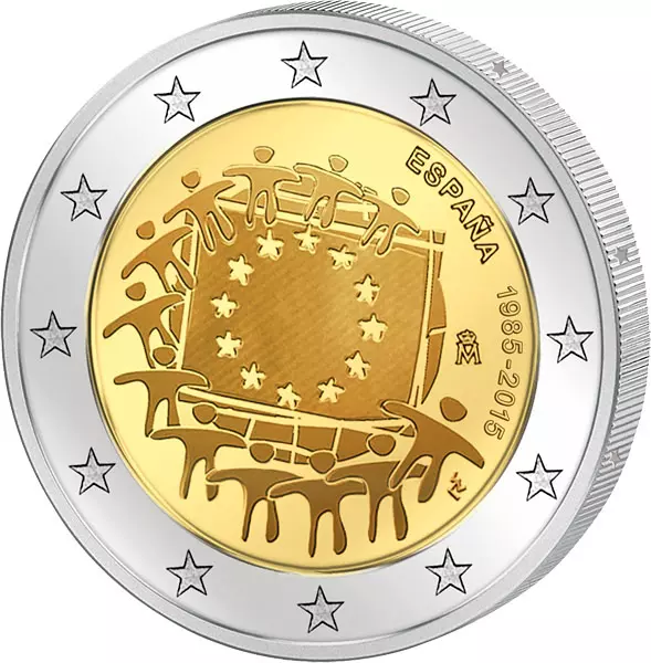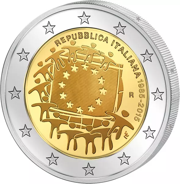 2 Euro Itlalien 30 Jahre Europaflagge Gemeinschaftsausgabe aller Länder 2015 prägefrisch