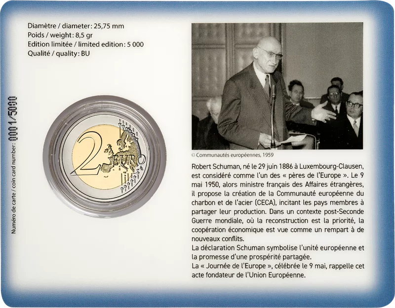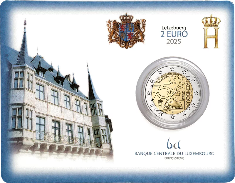 2 Euro Luxemburg 75 Jahre Schuman-Erklärung 2025 in Coin Card