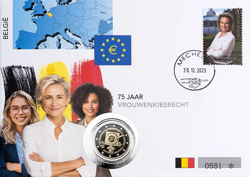 Im Jahr 2023 würdigte Belgien das 75-jährige Jubiläum des Frauenwahlrechts mit einer 2-Euro-Gedenkmünze. Diese ist Teil des Numisbriefs, der um eine Briefmarke des Landes ergänzt wird. Streng limitiert und einzeln nummeriert, ist er ein begehrtes Sammlerstück! Greifen Sie zu!