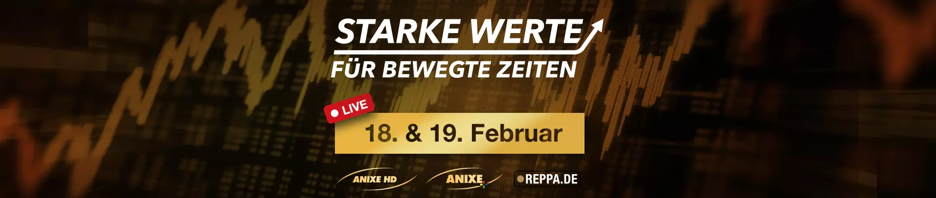 Unser Tipp an Sie lautet daher: Setzen Sie auf starke Werte in bewegten Zeiten – und genau die warten in unserer nächsten Liveshow auf Sie! Seien Sie dabei, wenn Ralph Reppa, Stefan Kohlberger und Walter Blum die aktuelle Marktsituation für Sie einordnen und Ihnen Neuigkeiten aus der Welt der Edelmetalle an die Hand geben. Mit dabei: ein exklusives Angebot des Tages mit Weltniedrigpreis-Garantie sowie zahlreiche Live-Angebote. Schalten Sie darum unbedingt ein auf Anixe HD, Anixe+, Dokusat oder im Stream auf reppa.de:
